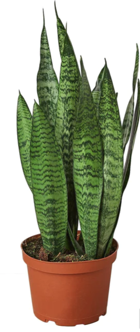 Snake plants have strong and sturdy, sword shaped leaves which are drought tolerant and retains the plants water. This plant can be easily propagated by leaf cuttings so you can multiply your family of snake plants or give them away as a gift. This particular variety will have its definitive dark green pattern towards the middle of each stalk.